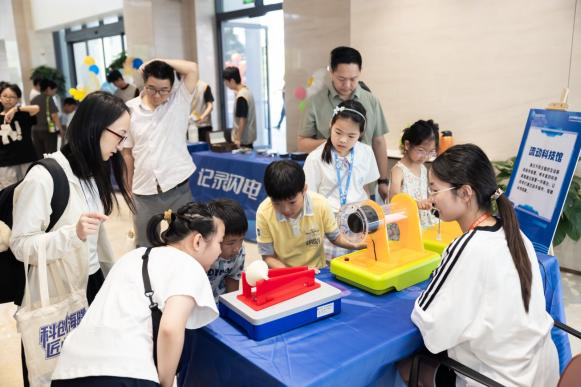 科技游戲互動區無疑是孩子們的樂園。八個攤位各具特色,猶如八個神秘的科技寶藏等待孩子們去探索??諝馀谕ㄟ^伯努利原理激發煙圈,互動性與觀賞性兼具;記錄閃電項目利用特斯拉設備與熱敏紙,讓親子家庭擁有了獨一無二的閃電紋路紀念;液氮體驗中,家長和孩子不僅了解了液氮特性,還品嘗到了用液氮制作的冰鎮爆米花;伯努利原理實驗通過花環氣球與吹氣挑戰,讓抽象的科學原理變得生動有趣,孩子們還能獲得超長氣球作為紀念;馬德堡半球實驗讓多人共同體驗大氣壓力的神奇,孩子們在驚嘆中感受到了科學的無窮魅力,他們對科學的熱愛也在這一次次的探索中不斷升溫。