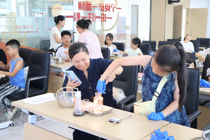 近日,鎮海區九龍湖鎮滕山路社區暑假期間開展“閱讀+實驗”特色科普活動。授課的翁錦程老師是北大藥物化學直博生,他帶領參加活動的學生和家長穿越化學史長河,通過經典文獻研讀與趣味實驗操作,解鎖科學新認知。