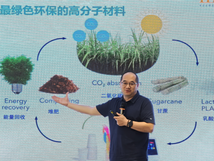 當(dāng)天活動現(xiàn)場,來自寧波家聯(lián)科技股份有限公司的市場部總監(jiān)田曉鋒老師給孩子們帶來了《可以“吃”的塑料》主題宣講,分享我國在降解材料領(lǐng)域的研究和企業(yè)通過科技創(chuàng)新研發(fā)綠色環(huán)保材料的故事。