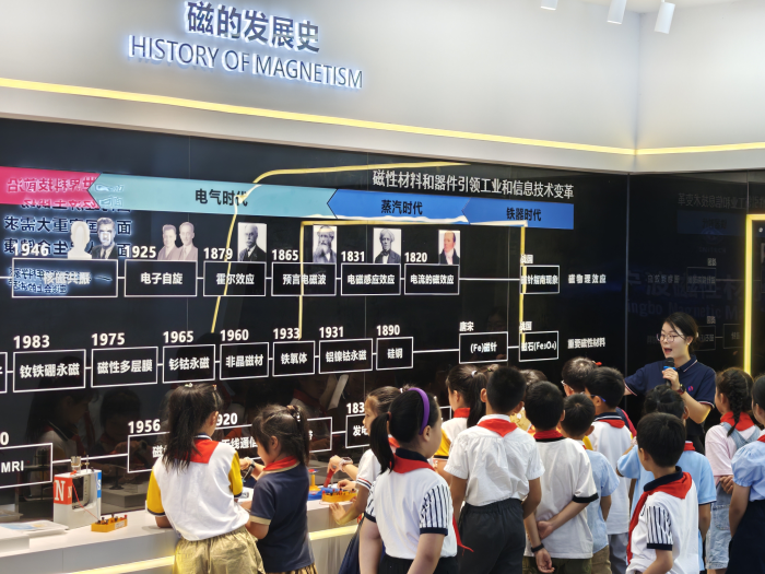 孩子們還在寧波磁性材料應(yīng)用技術(shù)創(chuàng)新中心老師的帶領(lǐng)下開啟“青春啟航 磁創(chuàng)未來”青少年科創(chuàng)主題研學(xué),“原來磁性材料在我們生活中有這么多的應(yīng)用,科學(xué)真的太神奇了,今天學(xué)到了很多新的知識?!眳⑴c本次活動的小李同學(xué)興奮地說。